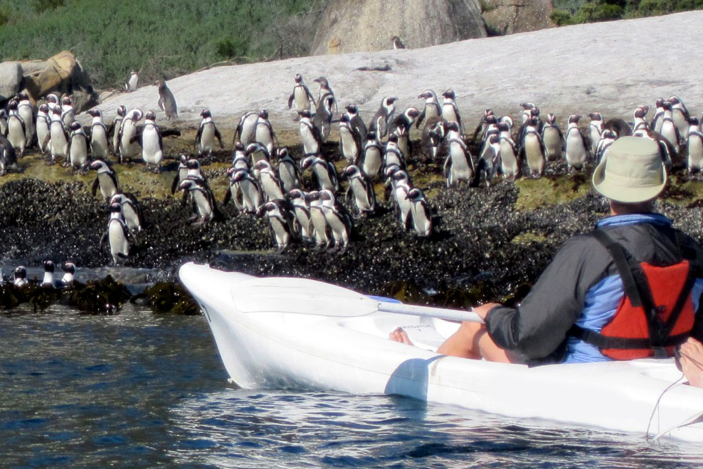 Heading off after breakfast we will enjoy one of our most memorable adventures – paddling out to view the famous Simon’s Town penguin colony! Using stable, easy to paddle two person kayaks, and guided with our personal instructor, we will launch from Simon’s Town Waterfront into the cool, clear sparkling water of the Atlantic Ocean. Weaving our way through the rocky pools and outcrops around Boulders Beach we will explore the waterways of this fascinating penguin colony. If the time and tide is right we may stop on a beach for a swimming break!